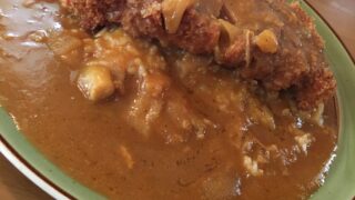 青森県弘前市の土手町にある「カレー&コーヒーかわしま」は、創業40年以上の老舗喫茶店です。煮込んだ肉と野菜の旨味が凝縮された、家庭的で深いコクのあるカツカレーは、地元で長年愛される看板メニューです。揚げたてサクサクのカツとルーのバランスが絶妙な「究極の家庭風カレー」を、レトロな空間で味わうことができます。_モモのひきグルメ探訪ブログ
